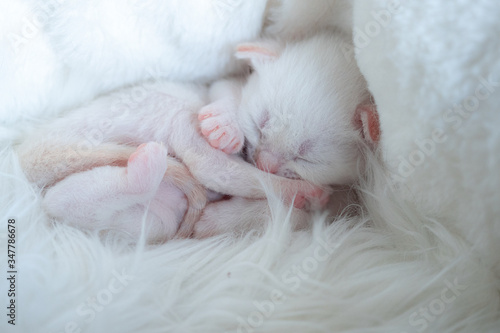 Newborn British Longhair White Kittens Sleeping on a Plaid
