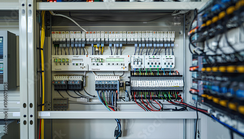 Newly Built Residential Building Electrical Wiring Installation Performed by Professional Caucasian Electrician. Industrial Theme