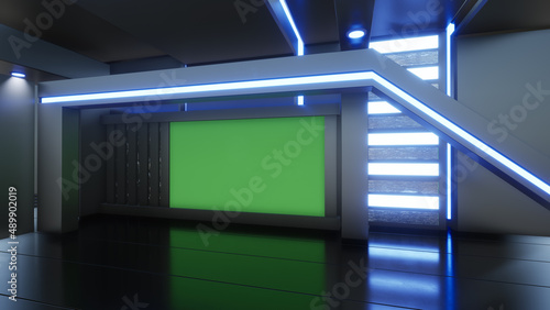 News Studio, Backdrop For TV Shows .TV On Wall.3D Virtual News Studio Background, 3d illustration