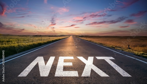 感動的な夕日をバックにNextと書かれた道路のシーン 次