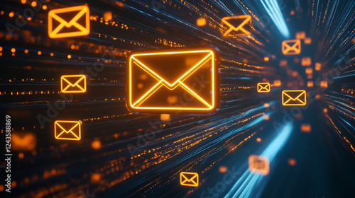 Next-Gen Communication Neon Email Icons in a Cyber Data Stream