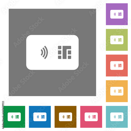 NFC chip card square flat icons