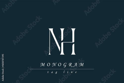 NH Initials Stylized Monogram Design Featuring Intertwined. Artistic representation of monogram initials creatively arranged and displayed.