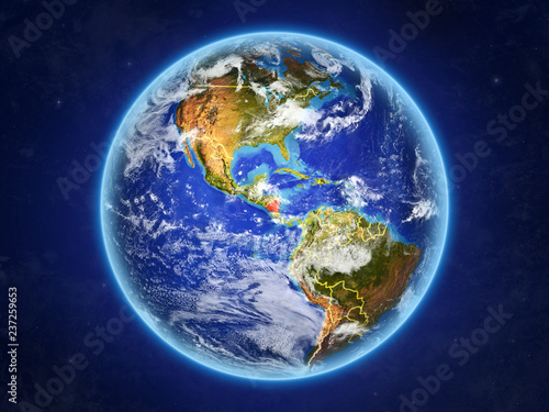 Nicaragua from space. Planet Earth with country borders and extremely high detail of planet surface and clouds.