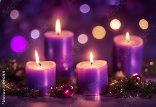night candles purple shiny christmas advent four ornament 4 spiritual pink red religion chaplet snow heaven hope church candlelight decoration light time burning symbol background flames candle