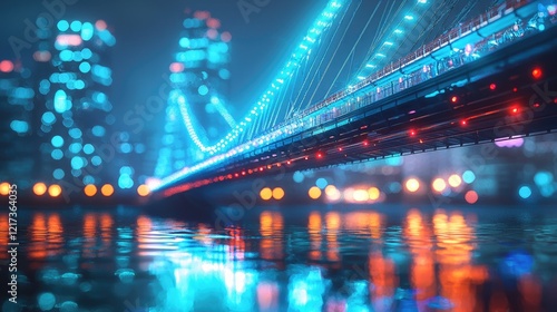 Night Cityscape, Illuminated Bridge Reflecting on Calm Waters