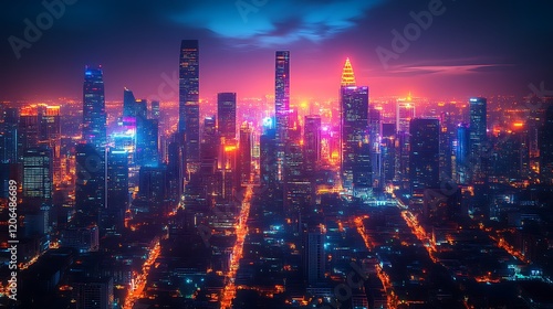 Night Cityscape, Skyline, Aerial, Lights, Dusk, Urban, China, Glow, Advertising, Travel