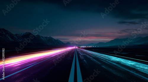Night Road: Vibrant Lights, Ethereal Landscape Photography