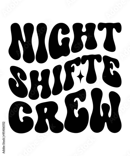 NIGHT SHIFTE CREW Trendy Retro Nurse SVG PNG Bundle, Funny Nurse Shirt Svg, Nurse Life Svg, Nurse wavy text svg, Stethoscope Svg, Nurse Mom Svg, Nursing svg