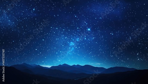 Night sky ablaze with stars over dark mountains