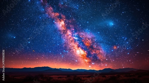 Night Sky Fireworks: Colorful Display Against Milky Way Background