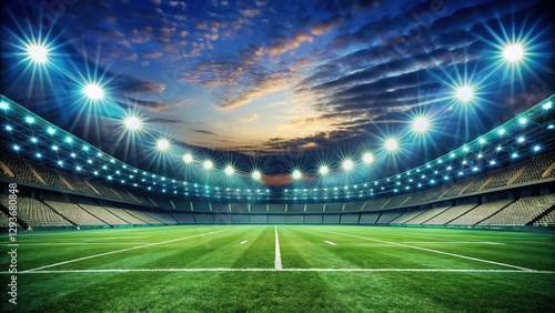 Night Stadium Lights Illuminating Empty Sports Field, Copy Space for Text