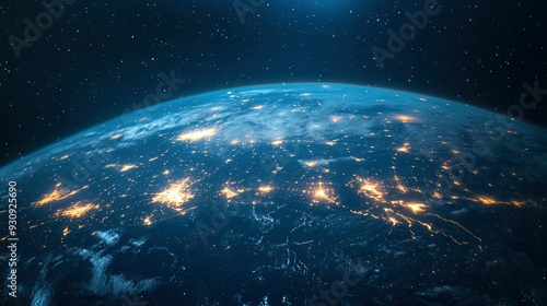 Nightly Earth planet in outer space. City lights on planet. Life of people. Solar system element. Elements of this image furnished , ai