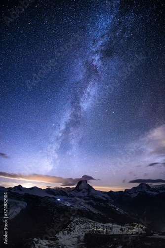 Nightscape with milky way and Matterhorn from Gornergrat, Zermatt