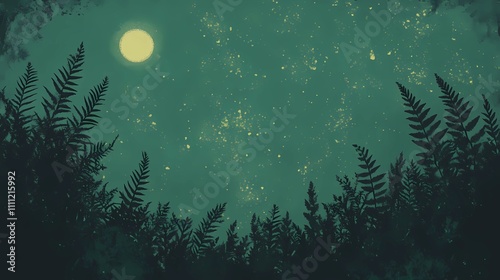 Nighttime field illustration combining pyrography-inspired textures and digital artistry for a magical and atmospheric fantasy scene.