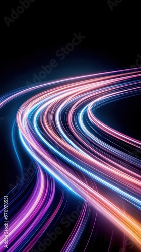 Nighttime racing track with colorful light trails, capturing the intensity of the race