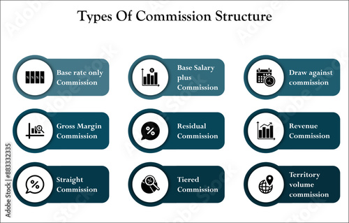 Nine types of commission structure. Infographic template with icons and description placeholder