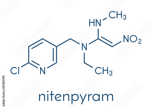 Nitenpyram insecticide molecule (neonicotinoid class). Skeletal formula.
