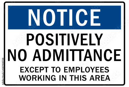 No admittance warning sign and labels positively no admittance except to employees working in this area