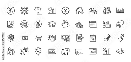 No cash, Vacancy and Money transfer line icons pack. AI, Question and Answer, Map pin icons. Low percent, Currency exchange, Graph laptop web icon. Vector