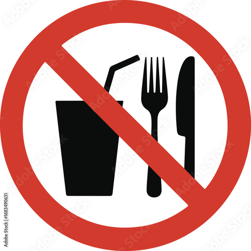 No eating and drinking sign ban on food forbidden black in red circle isolated on white background vector illustration