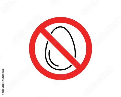 No Eggs Symbol simple design round prohibition sign food ingredient restriction vector illustration.