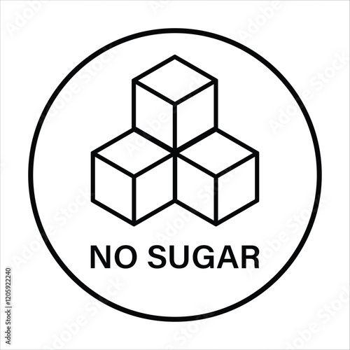 No Sugar icon line symbol in circle Sugar free simple black outline symbol. No sugar, glucose concept cubes icon flat design, ideal for sticker, stamp, food, print or web. Vector illustration, EPS 10.