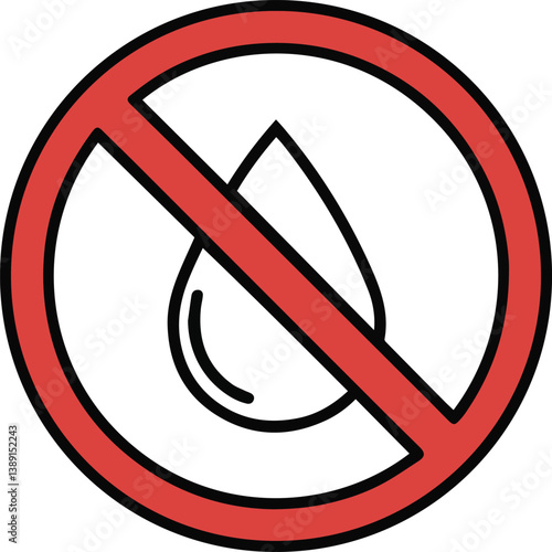No water drop ban prohibited restricted forbidden circle red sign symbol warning caution attention alert