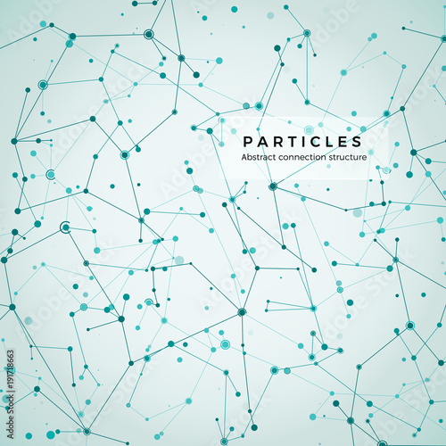 Node, dots and lines. Abstract particles geometric graphic background. Structure of atom, molecule and communication. Big data complex with compounds. Digital data visualization. Vector illustration