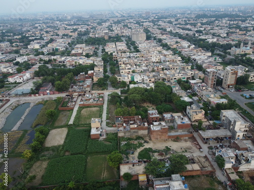 Non edited original high angle view of residential area with drone of cantt Lahore, Pakistan.