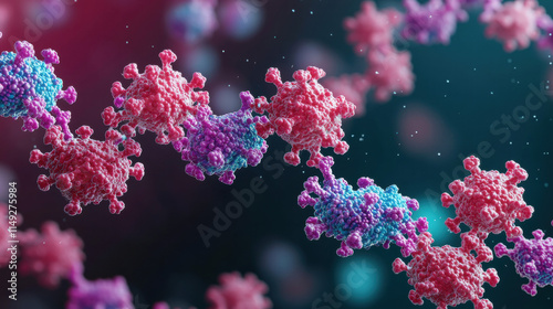 Norovirus COVID virus prevention. Vibrant molecular structures representing viruses in a scientific illustration.