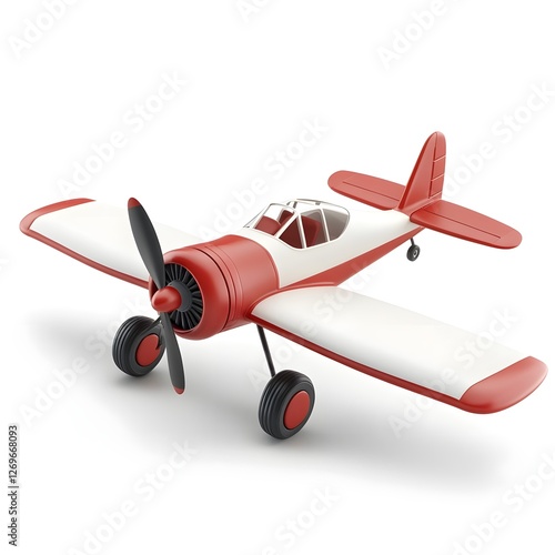 Nostalgic Toy Propeller Airplane 3D Render with Vibrant Red Color on Isolated White Background