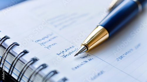 Notebook filled with meeting notes taken during a planning session in an office setting on a weekday afternoon