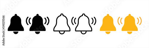 Notification bell icon. Alarm symbol. Ringing bell and notification for clock and smartphone. Incoming inbox message sign. Vector illustration