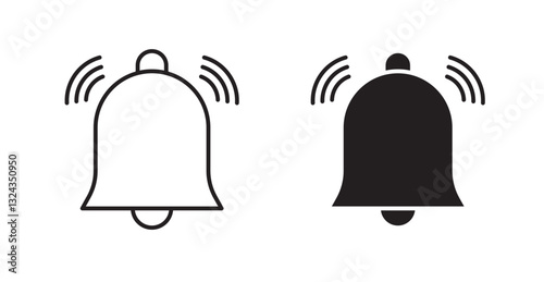 Notification bell thin line and fill vector icons set