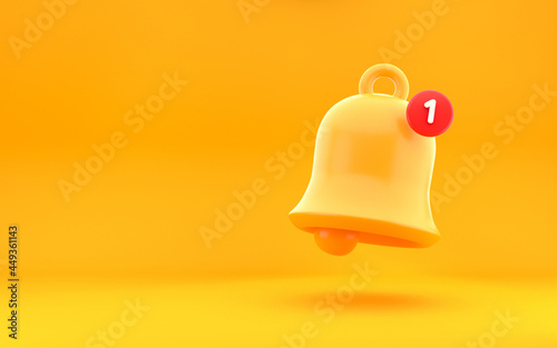 Notification icon. Message bell icon alert and alarm with smartphone reminder. Modern design, 3d rendering. Bright yellow background.