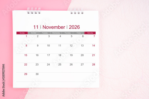 November desk calendar for 2026 year for schedule to make appointment meeting.