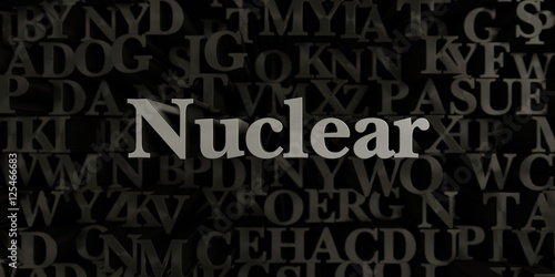 Nuclear - Stock image of 3D rendered metallic typeset headline illustration. Can be used for an online banner ad or a print postcard.