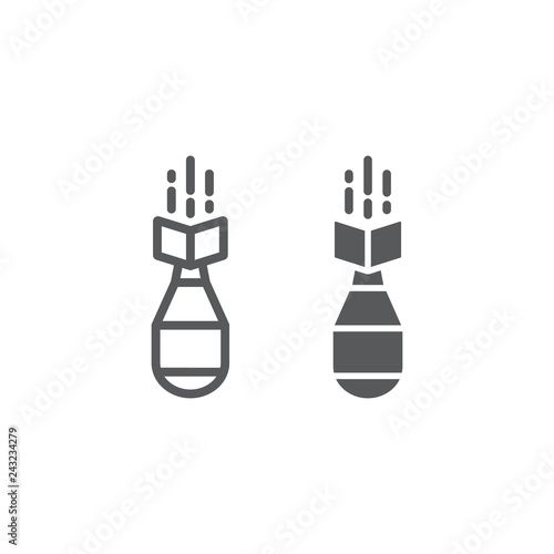 Nuclear bomb line and glyph icon, weapon and military, air bomb sign, vector graphics, a linear pattern on a white background.