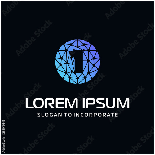 Number 1 Logo Design Template. Technology Digital logo . negative space, line, chip, Artificial Intelligence, concept. network icon, connection concept - Vector