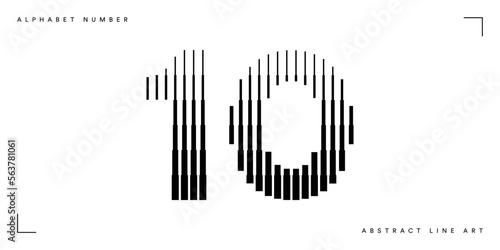 Number 10 with Abstract Line Pattern Isolated On White Background