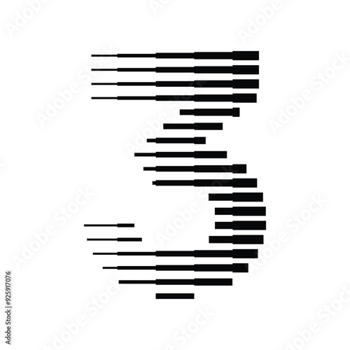 Number 3 with Abstract Line Pattern Isolated On White Background