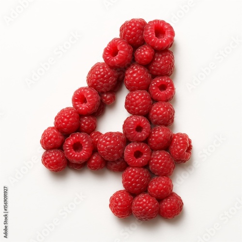 Number Four Made of Raspberries Isolated on White
