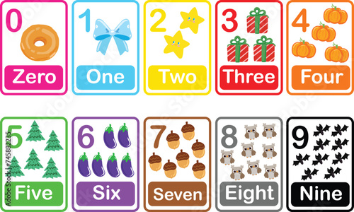 numbers cards. Educational children poster for teaching and learn kids to count and calculate vector illustration set
