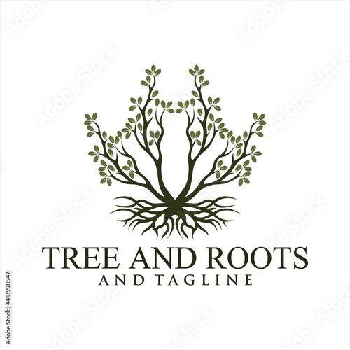 Oak tree logo illustration. Vector silhouette of a tree, Root Of The Tree logo illustration. Vector silhouette of a tree.