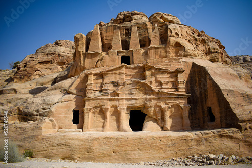 Obelisk Tomb standing at the entrance caves to Al-siq in Petra, Jordan. Petra, Jordan is included in the UNESCO heritage list.
