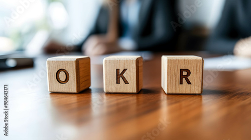 Objective and Key Results(OKR) concept, wooden cubes with word "OKR".
