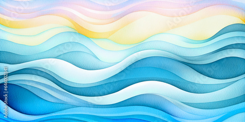 Ocean water wave illustration copy space for text. Abstract blue, teal happy cartoon sunny wave for pool party or ocean beach vacation travel. Web mobile wavy background texture wave