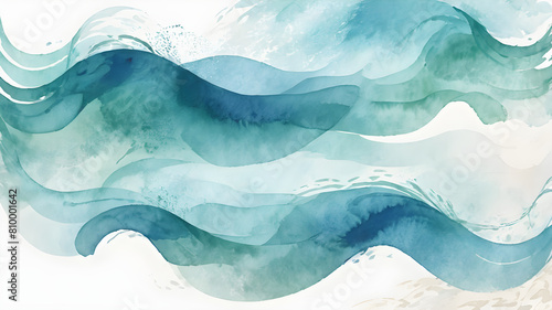 Ocean Waves Watercolor Art Abstract Background with Wavy Texture