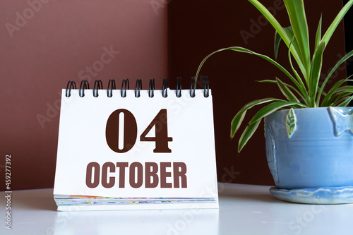 October 4. 04th day of the month, calendar date. Autumn month, day of the year concept.